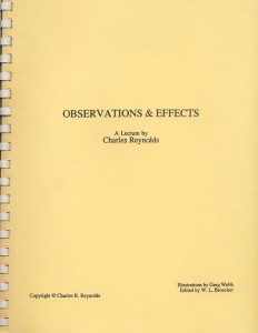After viewing any magic act, Charles’ go-to method of discovering how it might be improved, what was wrong with it, where it went right, etc. was to utilize 3 key questions that relate to the 3 aspects of any magic performance. He brought these questions up frequently during our discussions, and they never failed to bring about some insight. He also never failed to credit the source for these questions: his wife, Regina! For those that are interested, he wrote them down, along with a variety of other thoughts and some effects in his lecture notes, Observations & Effects.