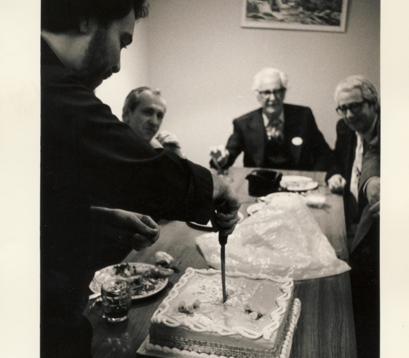 The same year David had a particularly strong impact while in attendance at the exclusive Ramsay Reunion convention in 1977. At this convention (held in celebration of John Ramsay’s birthday) Roth was able to spend time with an international array of magicians like Juan Tamariz, Gaetan Bloom, Bob Read, and Patrick Page, as well as living legends like Fred Kaps, Andrew Galloway, and Dai Vernon. Conjuring Arts has found a series of photographs from this convention. In the following slideshow, you can see David performing in front of the group, getting his silhouette cut, and even being surprised with a birthday cake. Coincidentally (or not) he shares the same birthday as John Ramsay. There are also pictures of Dai Vernon and Fred Kaps.